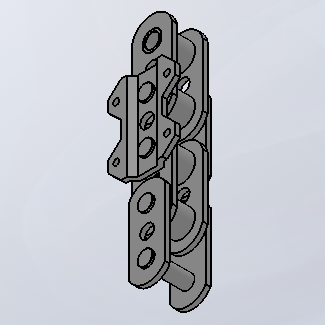 板鏈作為提升機(jī)的核心部件,我公司在板鏈設(shè)計(jì)時(shí)采用板鏈各部件“等失效”的設(shè)計(jì)理念,在滿足鏈條破斷拉力的條件下使其重量最輕。各部件材料選用優(yōu)質(zhì)合金鋼,吸收了德國先進(jìn)的加工制造工藝,確保產(chǎn)品優(yōu)異的抗拉和抗磨損性能,使用壽命長。”
